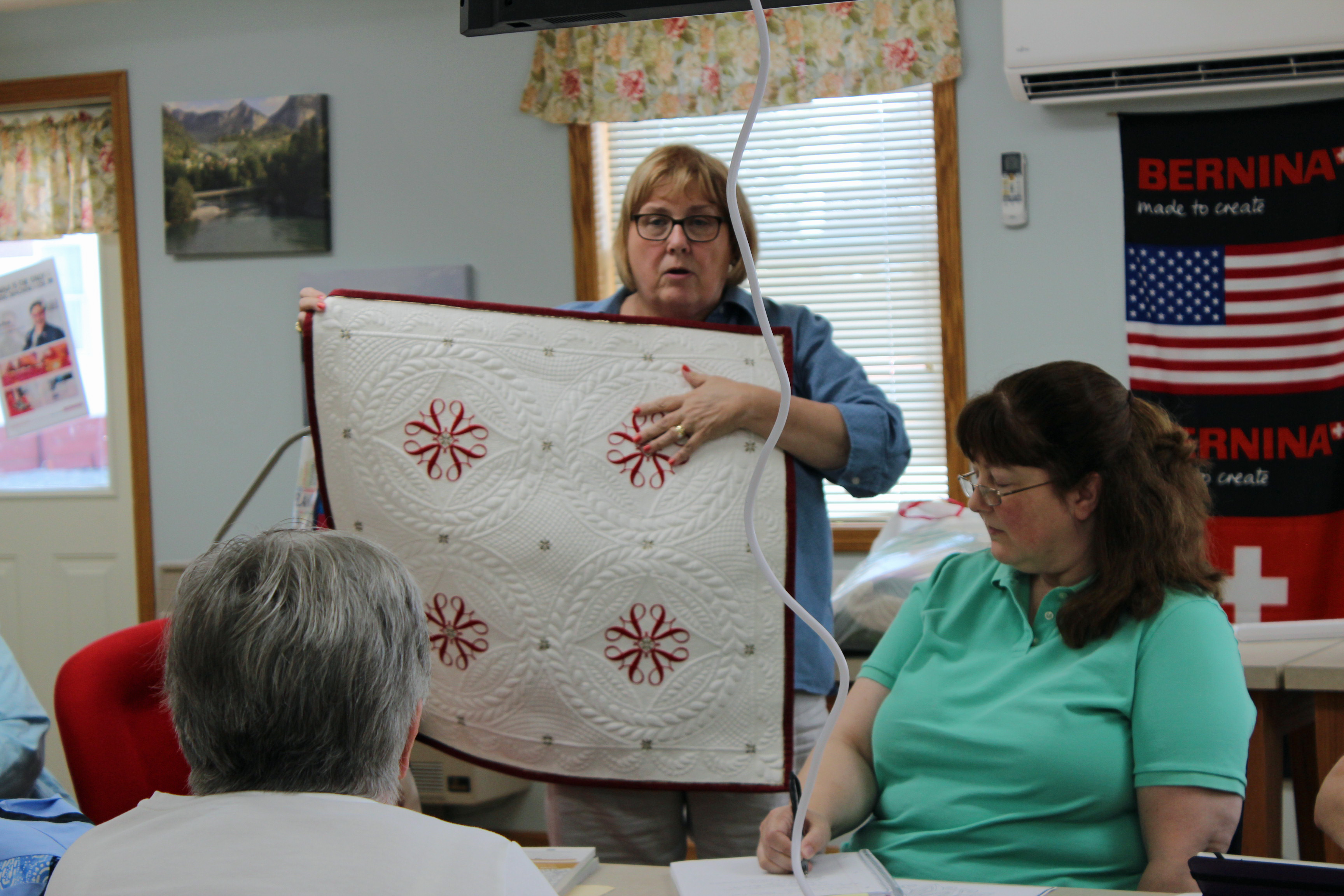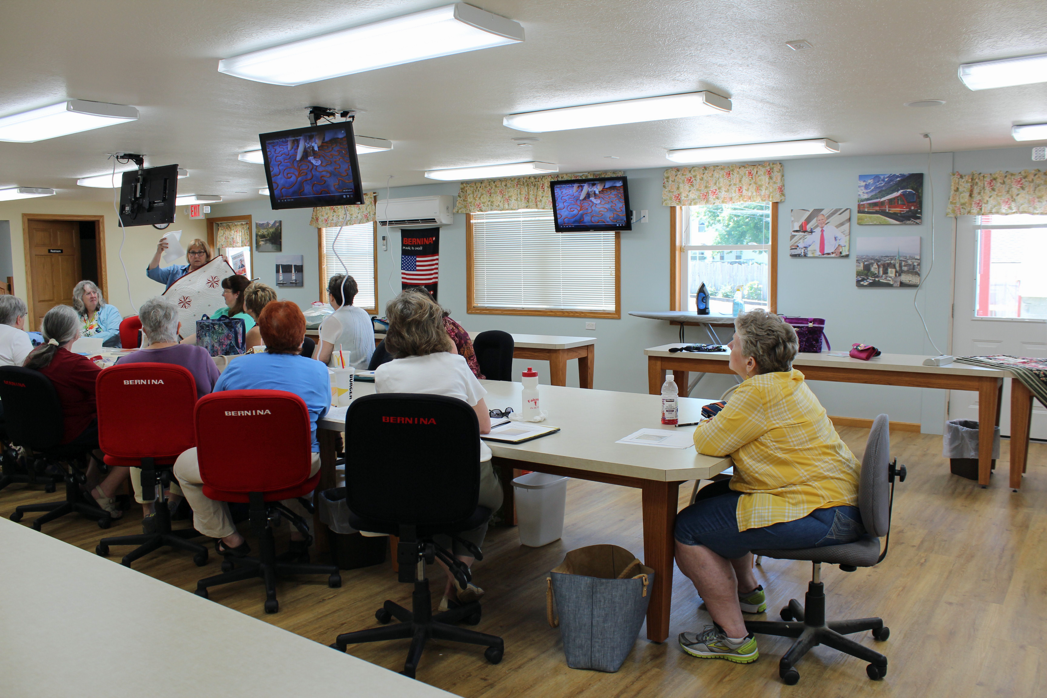 The store itself is worth the trip. They have recently remodeled. The class room is just reopened and beautiful and spacious. They carry some fabric and a large selection of notions and gadgets! They of course are most known for selling Bernina machines. They have the long arm on display.
