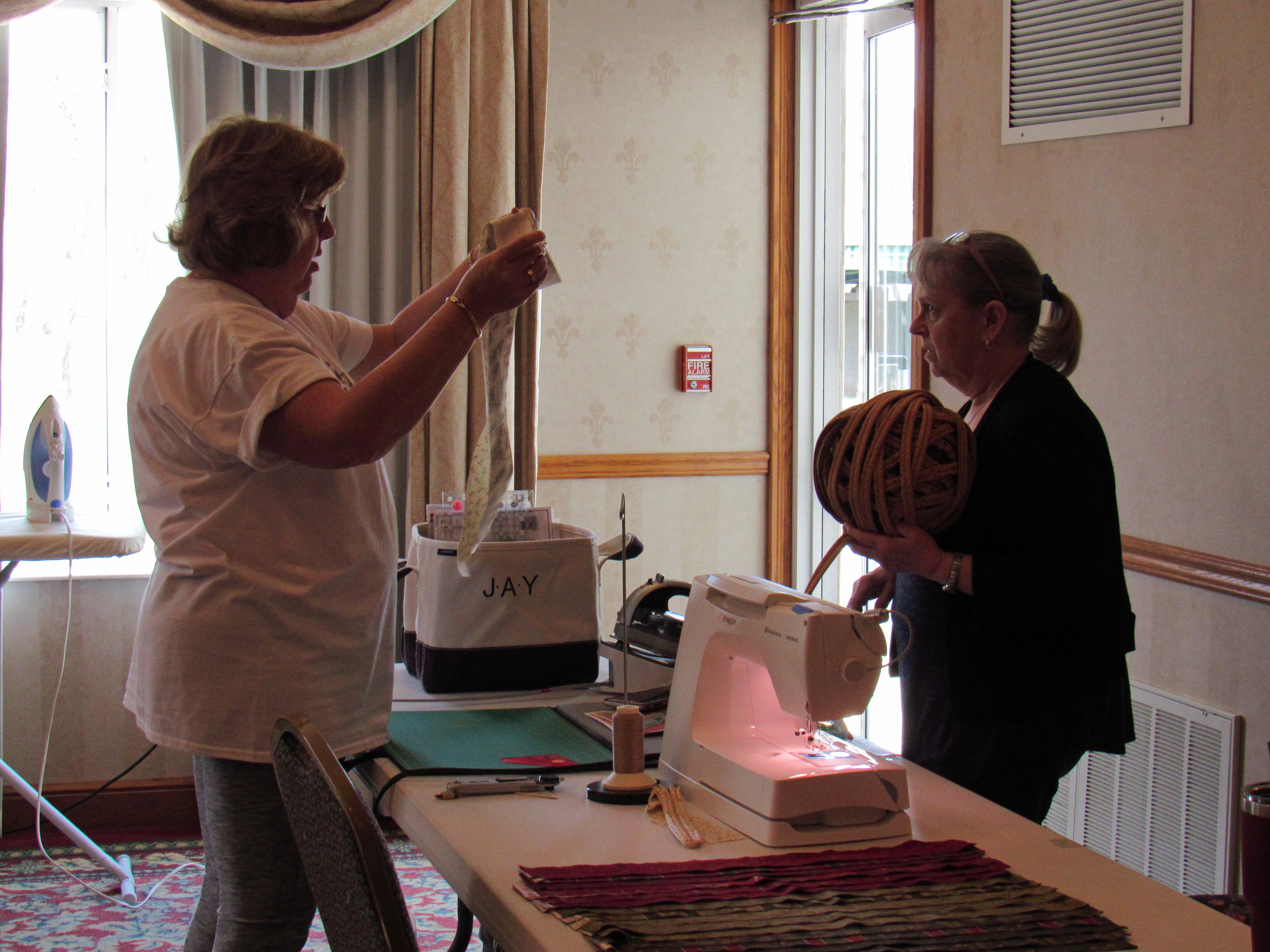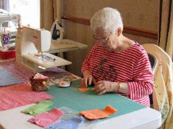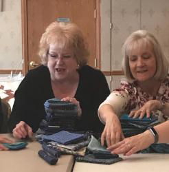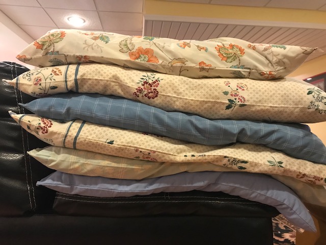 Jane Vines delivered six pillow cses filled with our batting and fabric snippets to hhe animal shelter in Ashland - they use this to make dog beds.