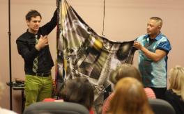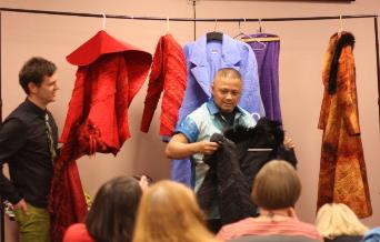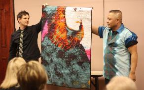 | Program Learn about quilted couture clothing, art quilts and printing on fabric. The Director of the School of Fashion at Kent State will tell us about the printing machine they have that can print fabric from a computer onto fabric up to 60" wide. When they get up and running they will print for anyone (for a charge of course) that brings them a disc. Also one of the Professors there does Art Quilt and quilted Couture Clothing. |